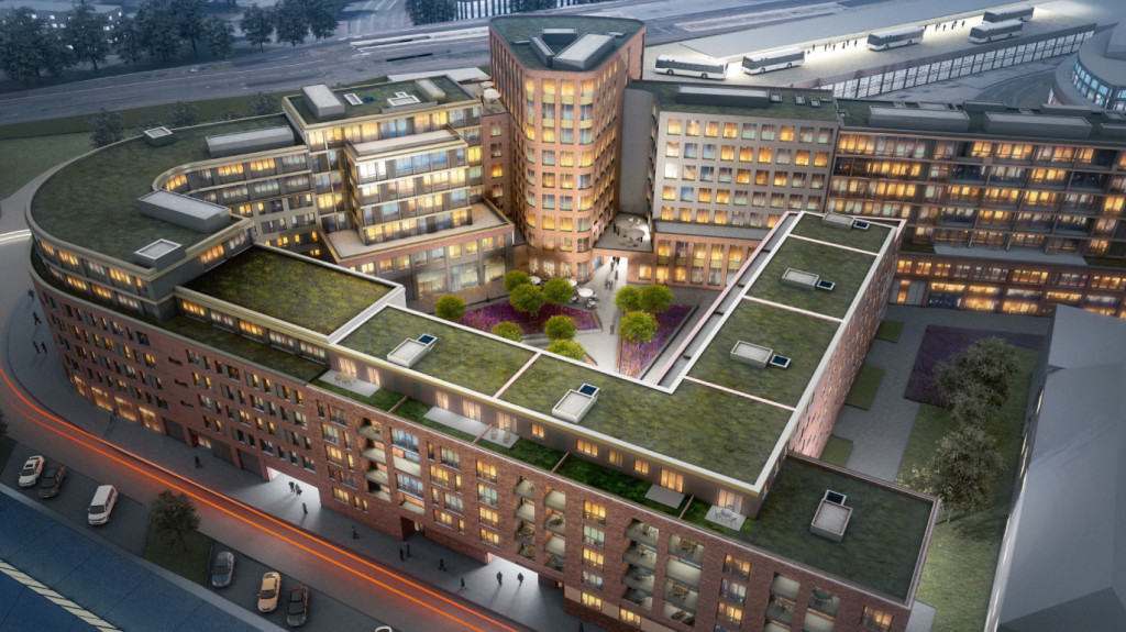 Das Ensemble aus fünf Gebäuden bietet einen attraktiven Nutzungsmix aus Büros, Einzelhandel und Gastronomie, einem Medizinischen Zentrum sowie einer Einrichtung mit integrativem Betreuungskonzept für Menschen mit erhöhtem Assistenz- und Pflegebedarf.